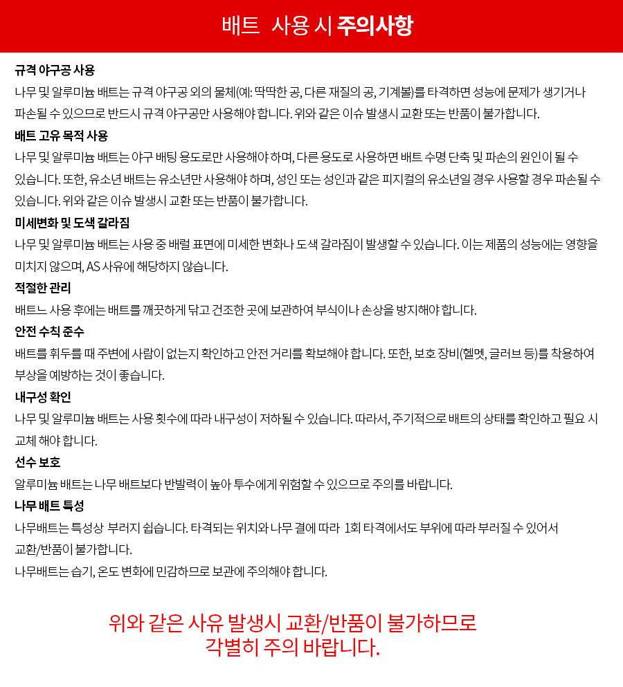 야구배트 사용시 주의사항